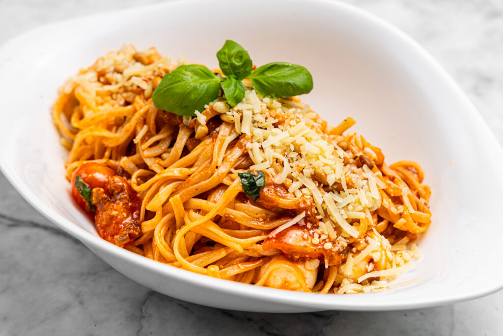 🍝 Pasta Caprese – täiuslik lohutuspasta punase pesto, mini-mozzarella, värske basiiliku ja krõmpsuvate piiniapähklitega. Iga amps on nagu soe Itaalia kallistus. 🇮🇹