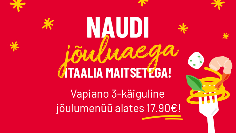 Broneeri oma järgmine firma- või erapidu Vapianos. Vali kõige sobivam pakett vastavalt oma eelistustele. Itaalia maitsetega üritused Vapiano 3-käiguline menüü alates alates 17,90 €! Vaata valikuid siit BRONEERI LAUD Minimaalne broneerimisaeg on 3 päeva enne üritust. Väiksemate broneeringute puhul pöördu otse restorani poole. Restoranide nimekiri leitav siit. Broneeri siin